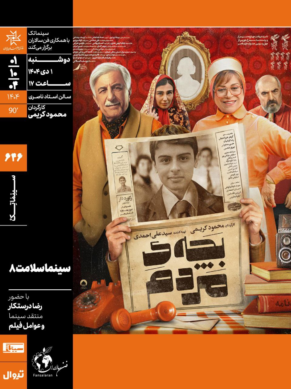 نمایش فیلم سینمایی «بچه مردم» با حضور هنرمندان سازنده این فیلم، و جلسه نقد و بررسی با حضور رضا درستکار (سردبیر فن‌سالاران) برگزار خواهد شد.